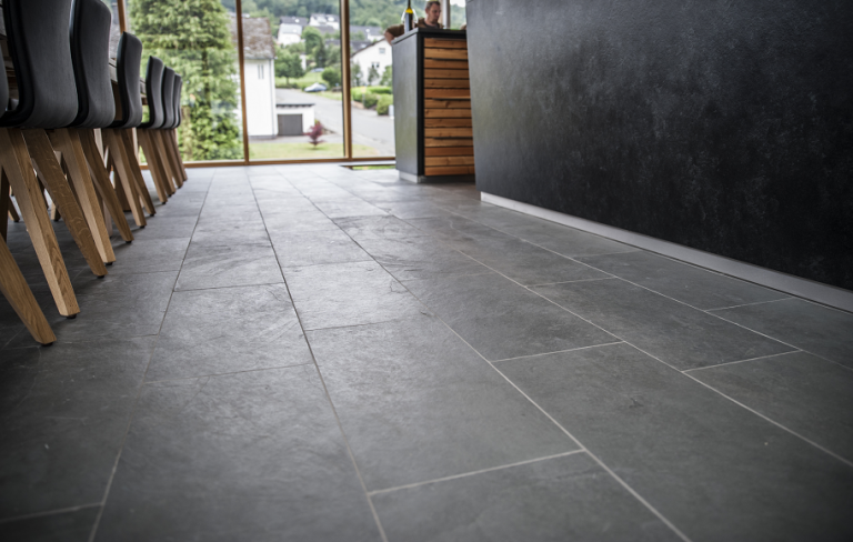 Natursteine haben sich im öffentlichen wie privaten Baubereich seit langem bewährt. Für den Innenausbau bietet Theis-Böger neben Schiefer vielfältige Materialien mit unterschiedlichen Oberflächen und Maßanfertigungen – von Fliesen über Treppen und Arbeitsplatten bis hin zu Bädern und Duschanlagen.