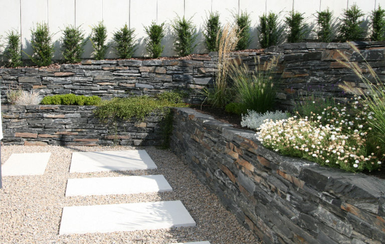 Schiefer und die anderen Natursteine im Sortiment von Theis-Böger eignen sich bestens zur individuellen Gestaltung der Außenanlagen.