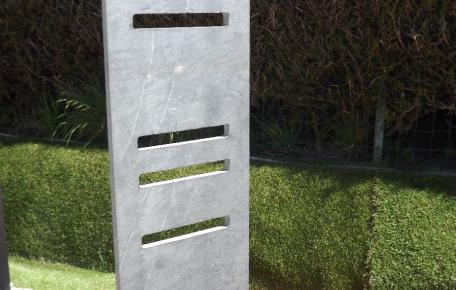 Stelen setzen besondere Akzente in jeder Außenanlage. Ob Dekostücke, Hangsicherung, Grundstückseinfriedung oder Sichtschutz – die Einsatzmöglichkeiten sind vielseitig. Oft bildet die richtige Kombination verschiedener Stärken und Größen oder die Abwechslung mit Findlingen/Steinbrettern die Basis für den Blickfang Ihres Gartens.