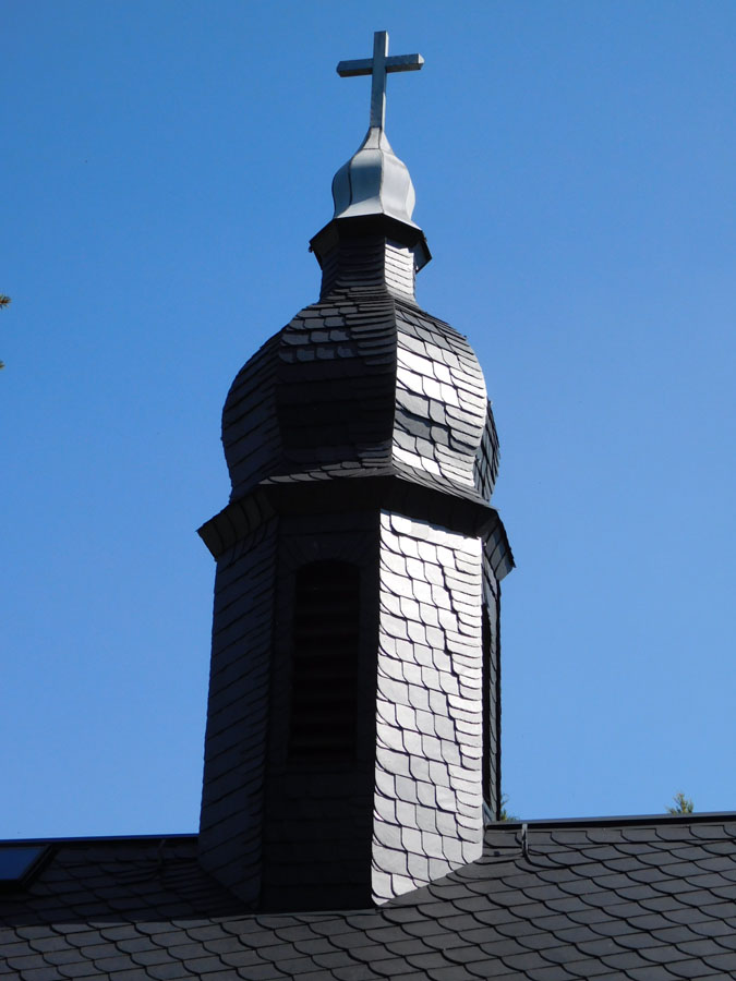 The bow cut (Bogenschnitt) and honeycomb cut (Waben) combine an excellent price-performance ratio with the basic advantages of slate roofing. On the one hand, large-scale industrial production results in a good unit price, while on the other hand the small quantity required per square metre results in additional cost benefits during roofing. Special sizes such as 30x30 and 25x25 cm honeycomb tiles are available on request.