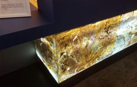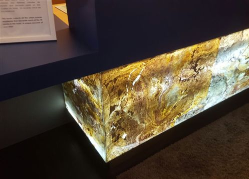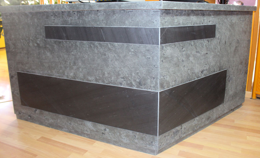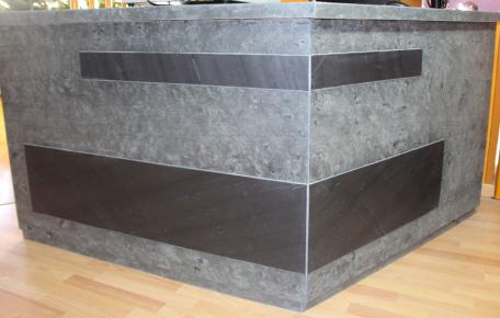 TB-FlexLine is a revolutionary product which combines the advantages of established fiberglass and of a natural weatherproofed stone. On the slab there is a ca. 0,6mm strong layer of natural slate of highest quality (A1,S1, T1). Besides the popular and in the market established Assulo mines, it is also possible to produce decorative varieties of colored slates. Because of its unique product details, TB-FlexLine enables it to create working processes even easier and faster and also to establish completely new opportunities. It means that curves or pillars can be covered without any problems or e.g. walls can be transformed into stone optic with the help of huge jointless panels.