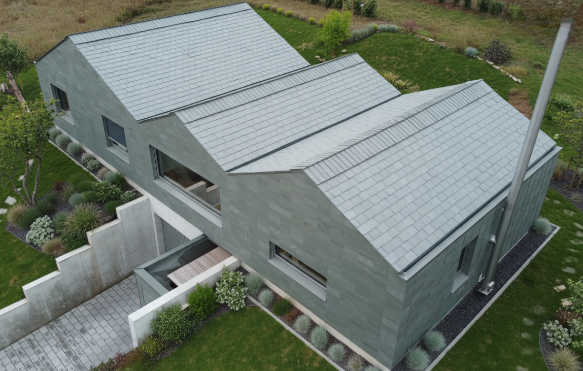 Für Fassaden sind neben der Rechteckdoppeldeckung auch die materialsparende „gezogene“ Deckung sowie die „waagerechte“ Deckung möglich. Aus optischen Gründen empfehlen sich hier kleine bis mittlere Formate, um ein harmonisches Gesamtbild zu erzielen.