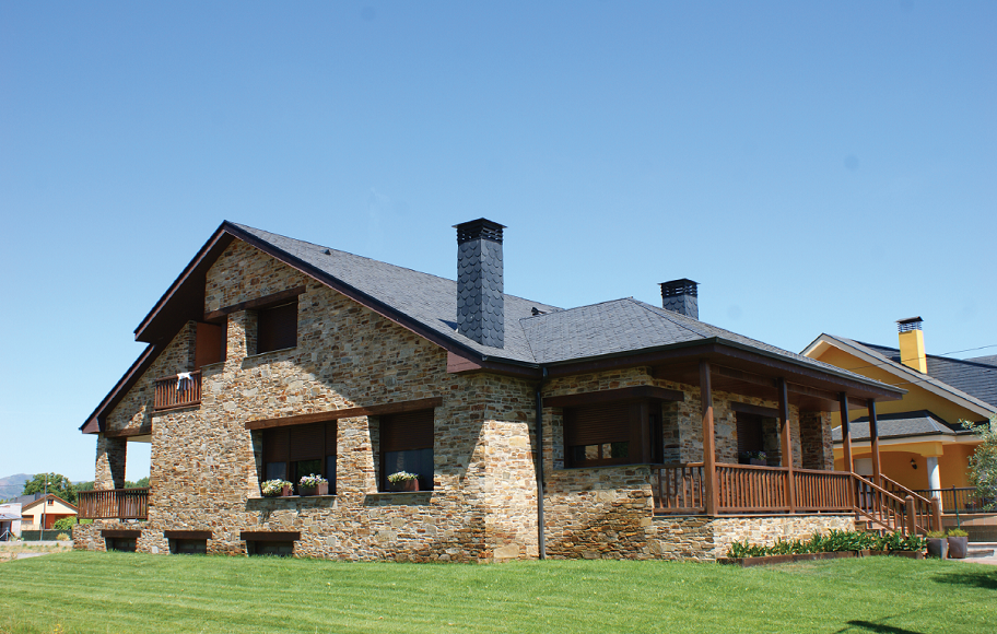 - vorgemauerte Natursteinfassaden (Verblendmauerwerk)